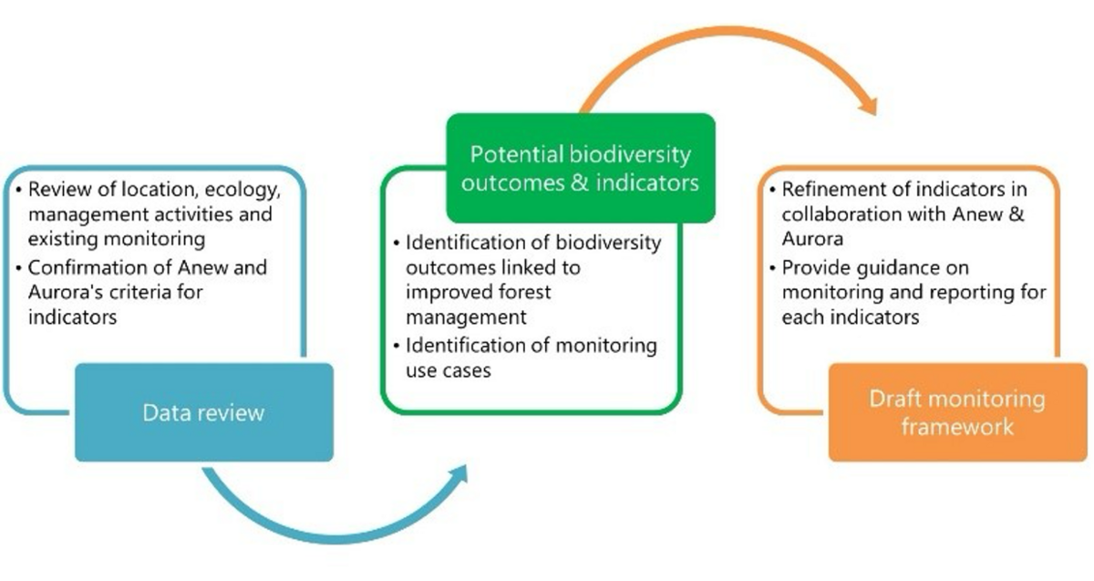 A suite of practical, science-based indicators tailored to detect biodiversity changes linked to IFM. This suite of indicators recommended to Aurora is intended to be defensible (clear and evidenced links to IFM) and cost effective (capable of utilising remote sensing and other cost-effective monitoring technologies), while covering different components of biodiversity: structure, composition, significance.